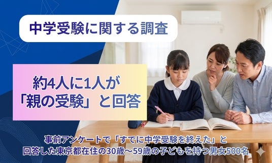 そこで今回、中学受験に役立つ情報提供サービスを展開する「中学受験ノートだぞう」と共同で、東京都内在住で「すでに中学受験を終えた」と回答した30歳~59歳の保護者500名を対象に、「中学受験に関するアンケート調査」を実施しました。