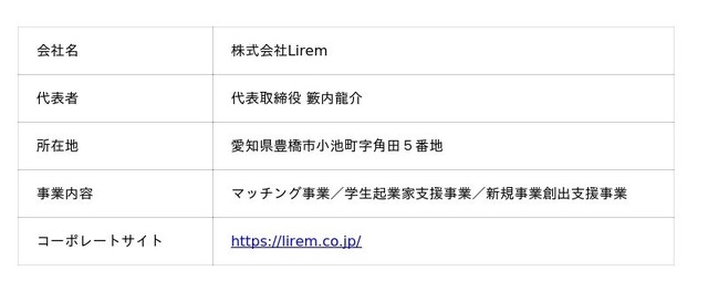 株式会社Lirem(本社:愛知県豊橋市、代表取締役:籔内 龍介)は、第1期火-Okoshi卒業生の岩隈 依辰氏が立ち上げた合同会社キャンパスコンパスの「キャンパスコンパス事業」を事業買収いたしました。あわせて、本事業のさらなる発展と価値最大化を目的に、一般社団法人 火-Okoshi(代表理事:畠中 蒼太)へ運用を委託し、事業提携を開始したことをお知らせいたします。