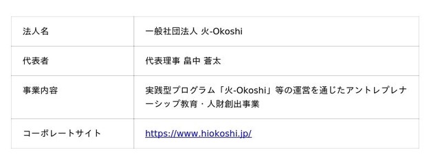 ▍一般社団法人 火-Okoshiについて