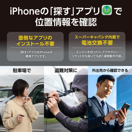 日常使いから旅行先・大型駐車場での駐車位置確認、万が一の車両探索まで、カーライフの安心と利便性を高める新しい車載アクセサリーです。
