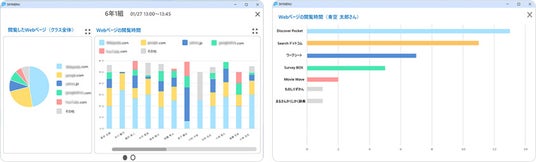 近年、学校教育で「探究的な学び」が注目され、子どもたち自身が情報を収集・分析する機会が増えています。その一方で、教員にとっては「子どもたち一人ひとりがどのような情報にアクセスし、学びを深めているのか」を把握するのが難しいという課題がありました。新機能「Webアクセス状況確認」では、児童生徒のWebサイトのアクセス状況を見える化することで、個々の探究活動の状況や学びの足あとを具体的に把握。より適切な指導や支援が行えます。