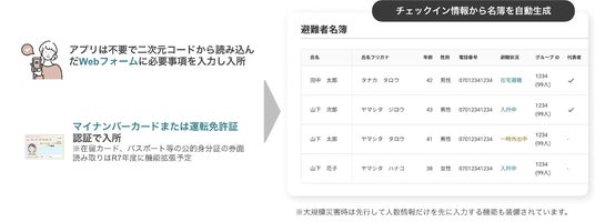 今回、紙の避難者カードによる受付は実施していませんが、紙受付では、「避難者情報のデータベース化(転記・集計)」が必要となる一方、Webフォームやカードリーダーはシステムによる自動集計のため、この工程が発生せず、よりスムーズな入所が可能です。