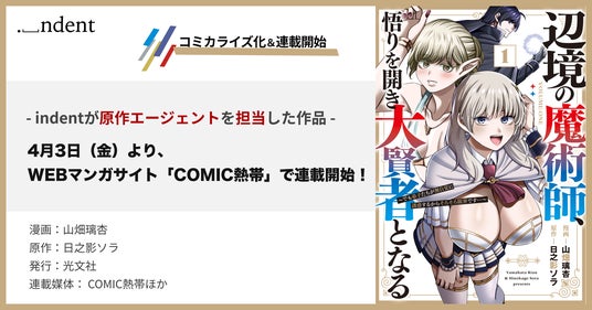 65万人を超える作家と企業をつなぐ創作プラットフォーム「Nola(ノラ)※1」を提供する株式会社indent(本社:東京都千代田区、代表取締役社長:釜形勇気 以下、「indent」)は、indentが原作エージェントを担当した『辺境の魔術師、悟りを開き大賢者となる~でも弟子たちが無自覚に誘惑するからそろそろ限界です~』(漫画:山畑璃杏、原作:日之影ソラ、発行:株式会社光文社)のコミカライズ作品が、2026年4月3日(金)より、WEBマンガサイト「COMIC熱帯」(https://www.comicnettai.com)ほかにて連載が開始されましたことをお知らせいたします。