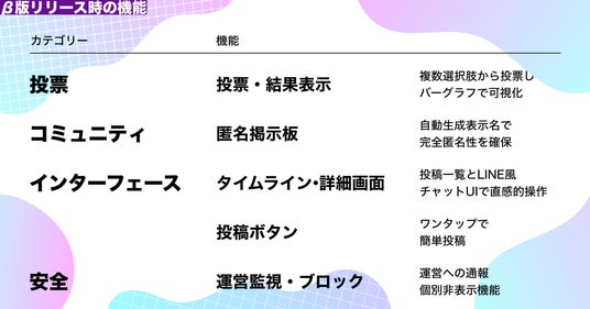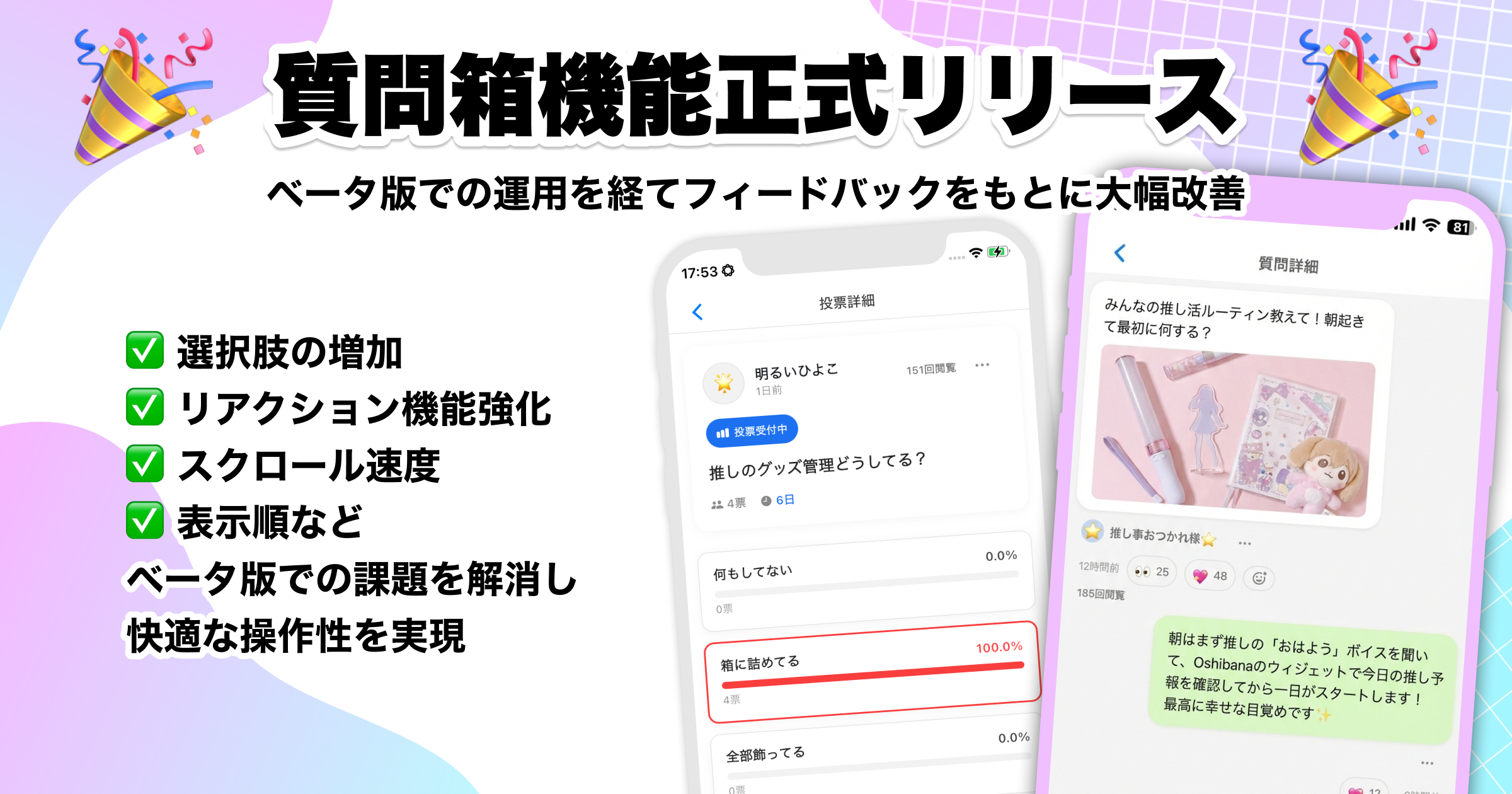 「質問箱」β版では、投票機能のみをまずリリースし、「質問箱」のコンセプトが受け入れられるか検証を開始しました。