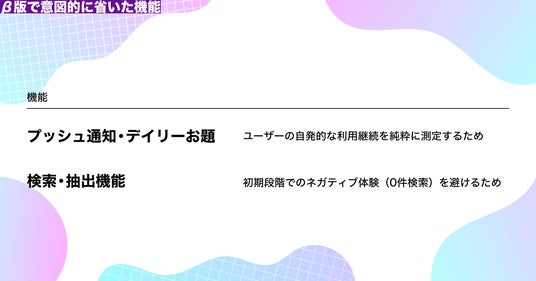 初期リリースでは、ユーザーの自発的な行動を観察し、「質問箱」のコンセプトが本当に必要とされているかを検証することに集中しました。