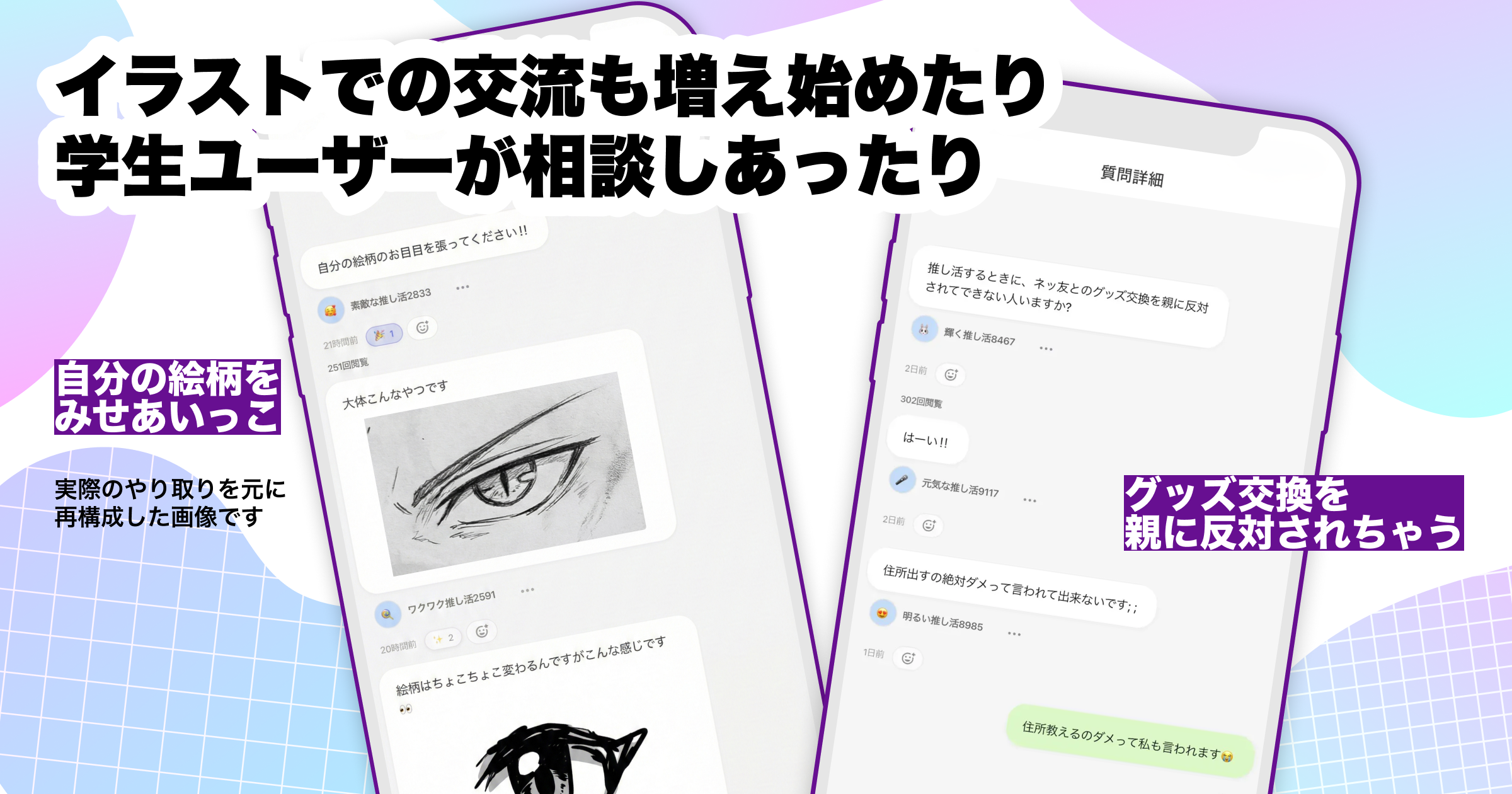 質問機能では、推し活のグッズ交換を親に止められている悩みや、その解決策について話し合うなど、学生ユーザーたちの悩みに関するやり取りが目立ちます。匿名性により、本音で語り合える環境が、推し活の悩みを共有し解決策を見つける場として機能していることが分かりました。