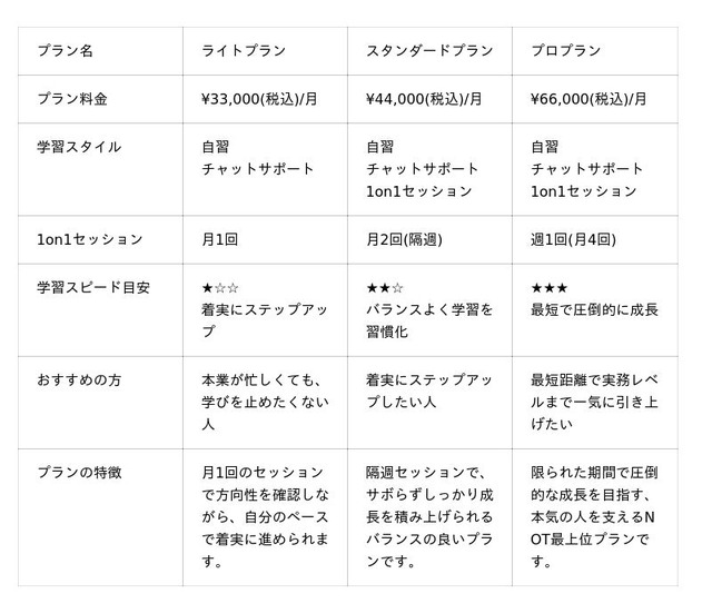 - パーソナライズカリキュラム開始前のヒアリングで目的・現状・キャリアプランを整理し、専用プランを設計