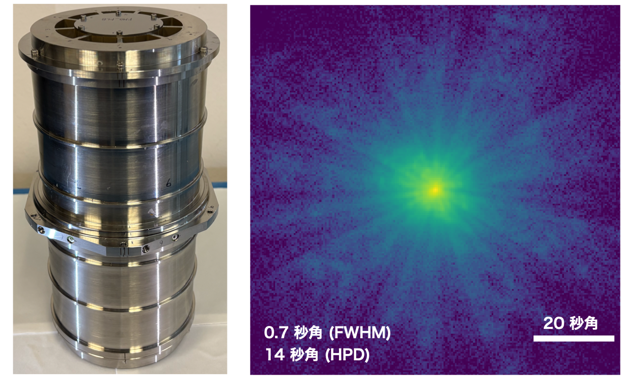 - 性能評価の結果、FWHM注4) 0.7秒角注5)、HPD注6) 14秒角という高い解像度を達成した。