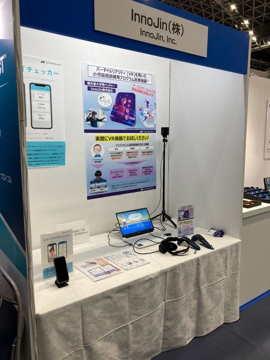 展示している医療機器は、VR空間におけるゲーム体験を通じて小児弱視の訓練を行うプログラムです。子どもたちが楽しみながら自然と夢中になれる仕組みを採用しており、継続的なトレーニングによる治療効果の向上に加え、保護者の心理的・時間的負担の軽減にもつながることが期待されています。