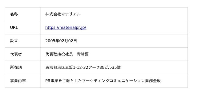 株式会社マテリアル(PR 事業を主としたマーケティングコミュニケーション業務全般)