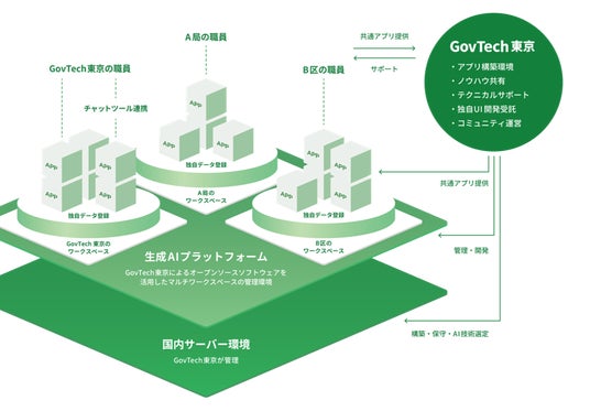 GovTech東京は、東京都デジタルサービス局と連携し、職員が生成AIを活用したアプリケーションを簡単に作成できる共通基盤として、生成AIプラットフォーム「A1(えいいち)」を内製で整備・構築しています。
