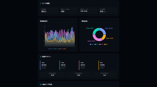脳波センサーを用いて集中度や感情の変化を計測し、思考の特徴を可視化する体験型コンテンツ。音楽や映像の刺激に対する反応をもとに、直感的に理解できるタイプ分類として提示されます。