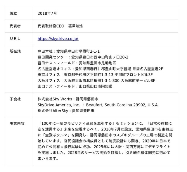 ・『空飛ぶクルマ』を開発するSkyDrive(スカイドライブ) 世界初披露の機体「有人機SD-03」で、公開飛行試験を成功(2020年8月28日)