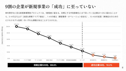 単年黒字化を達成するプロジェクトは約10%。 成功企業は、極端なユーザーに対する「N=1定性リサーチ」を重視し、定量(規模)と定性(因果)を往復することで意思決定の精度を高めています。