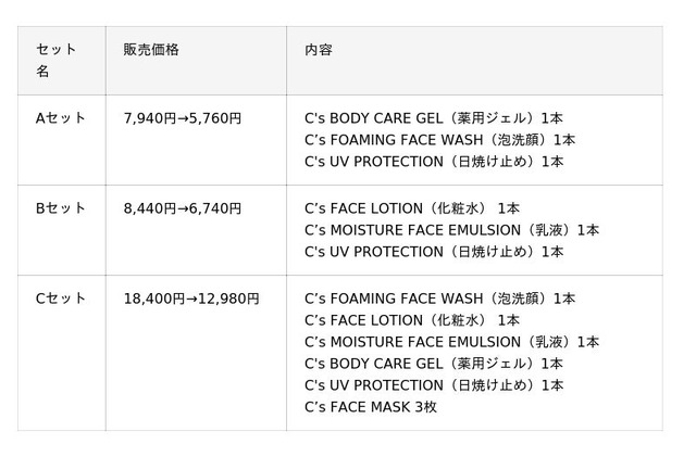 ■スキンケアブランド『C’s(シーズ)』セット商品概要