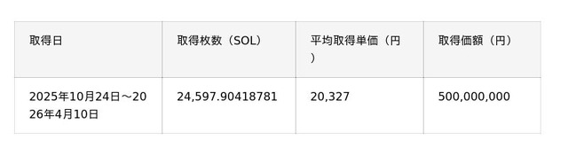 2025年10月に開始したソラナ・トレジャリー事業は、当初のマイルストーンである累計取得金額5億円に到達いたしました。この期間、SOLの市場価格の下落局面を捉えた機動的な買付により平均取得単価を大幅に抑えることに成功し、保有規模はCoinGecko「Solana Treasury Holdings」ランキング(※1)で世界第15位相当となっています。今後もさまざまな施策を通じてSOLの保有規模を拡大し、早期に世界TOP10入りを目指してまいります。