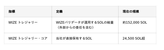 当社はソラナ・トレジャリー事業の成長指標として「WIZEトレジャリー」と「WIZEトレジャリー・コア」の2つを設定しています。自社で保有するSOLが増えるほどステーキング報酬が拡大し、外部から預かるSOLが増えるほどバリデータ報酬が拡大します。これらの報酬はすべてSOLで受け取るため、保有SOLがさらに増加する好循環が生まれる構造です。今後は、自社保有SOLの積み上げと外部からの委任獲得の両面で、収益基盤のさらなる強化を目指してまいります。