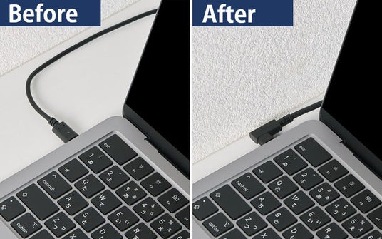 - ケーブルの両端にL字コネクターを採用し、飛び出しが少ないすっきりした配線が可能なUSB Type-Cケーブルです。- 直角の向きに配線が可能。スペースに合わせた配線ができるため、狭い場所での使用にも便利です。