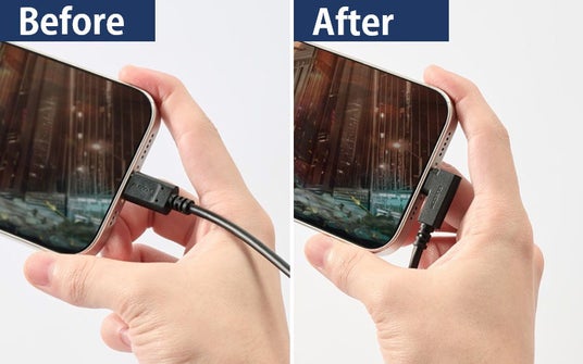 ▲ L字コネクターならスマートフォンを横持ちする時、持ちやすく、操作もしやすい
