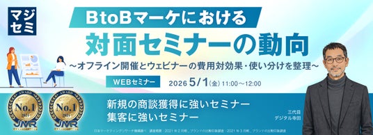 本セミナーでは、対面セミナーが見直されている背景を踏まえつつ、オフライン開催とウェビナーの違いを、費用対効果、運営負荷、集客の広がり、継続性といった観点から中立的に整理します。その上で、参加者が「まずはウェビナーで十分」と考えやすい現在の行動変化も踏まえ、見込み顧客との接点を継続的に生み出し、限られた予算と工数の中で成果を最大化する手段として、ウェビナーをどのように活用すべきかを解説します。