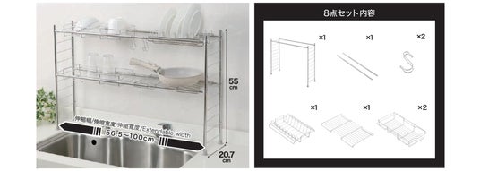 今回発売するニトリの伸縮シンク上ラック「SUSシリーズ」の8点セットは、食器スタンドやバスケットなどお客様から支持の高いオプションパーツをあらかじめ組み合わせたセットとすることで、購入後すぐに使い始めやすい商品です。さらに、「2段ラックとして使いたい」という声にお応えし、2段仕様へと拡張しました。収納量を高めることで、たくさんの洗い物を置きたいというニーズにも対応します。