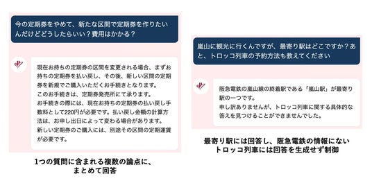 株式会社neoAI(本社:東京都千代田区、代表取締役CEO:千葉 駿介、以下「neoAI」)は、阪急電鉄株式会社(以下、阪急電鉄)と共同で、1日約164万人が利用する鉄道のお客様対応に向けた生成AIチャットボットを開発し、阪急電鉄公式ウェブサイトでの提供を開始いたしました。ガードレール設計を備えつつ、生成AIの推論能力により、従来のFAQ型では困難であった複雑な質問にも柔軟に回答。さらに、RAGの検索精度を考慮した独自の前処理・構造化により、FAQの手動更新を不要とする運用設計を実現しました。