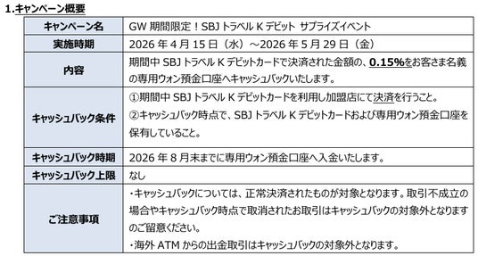 株式会社SBJ銀行SBJ銀行は、韓国の大手金融グループである「新韓金融グループ」の中核を成す新韓銀行の日本現地法人です。新韓銀行の海外拠点として1986年に日本進出後、外資系銀行では2番目に金融庁の許可を受けました。2009年の開業以来全国展開し、預金・貸出等の金融商品・サービスを提供しています。