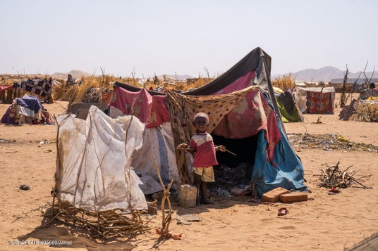 北ダルフール州エル・ファーシルから、タウィラの避難民キャンプまで逃れてきた家族が寝起きをする仮設テント(スーダン、2026年1月26日撮影) (C) UNICEF/UNI935560/Jamal