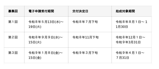 ※ 申請は、国が提供する電子申請システム「Jグランツ」にて受付予定です。