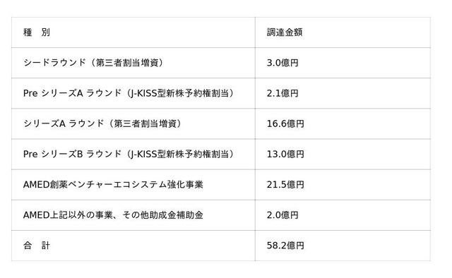新規投資家:Astellas Venture Management、味の素、塩野義製薬、日本ベンチャーキャピタル