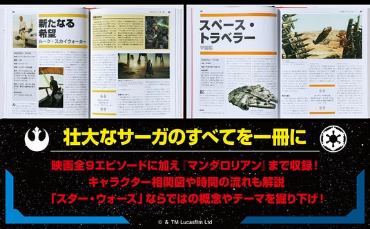読み物としても充実の内容で、単なる事典にとどまらず、キャラクター相関図や時間の流れにまで言及。『スター・ウォーズ』ならではの概念やテーマを掘り下げた、初心者からコアなファンまで楽しめる解説文が見どころです。