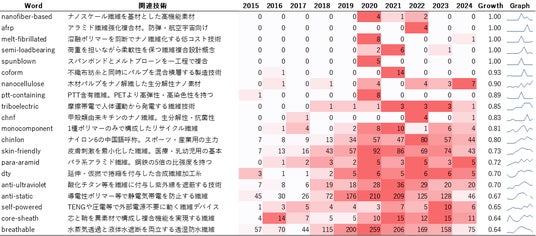 図3は、特許情報から抽出されたキーワードの年次推移です。