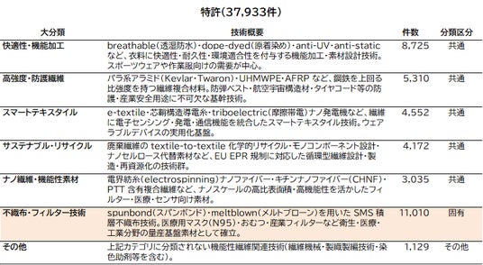機能性繊維・スマートテキスタイルに関する特許の動向分析