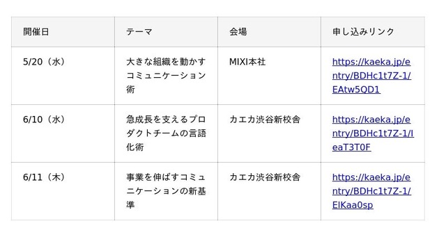 5月20日の株式会社MIXI本社での奥山氏による共同イベントを皮切りに、6月10日には株式会社タイミーのVPoP大歳氏、そして翌11日にはBoost Capital株式会社 代表取締役の小澤隆生氏をゲストに迎え、教科書通りではない「言語化」の苦悩と技術、そして変化し続けるための「伝え方」の構造を、公開イベントを通じて発信してまいります。