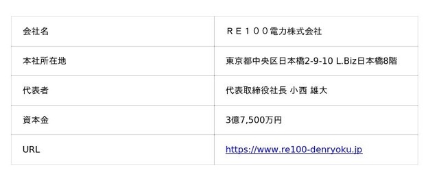 会社名:RE100電力株式会社