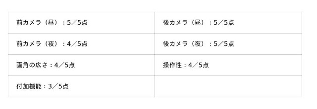 昼夜とも明るめですが、後カメラは全体的に白っぽく映っています。コンパクトなので視界を邪魔せず、それでいて操作性は損なっていません。