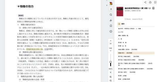 書籍の閲覧画面において、本文中の法令リンクより、書籍の内容現在の該当法令にワンクリックでジャンプ!過去法令をもう一度調べ直す手間がなく、円滑なリサーチを実現!