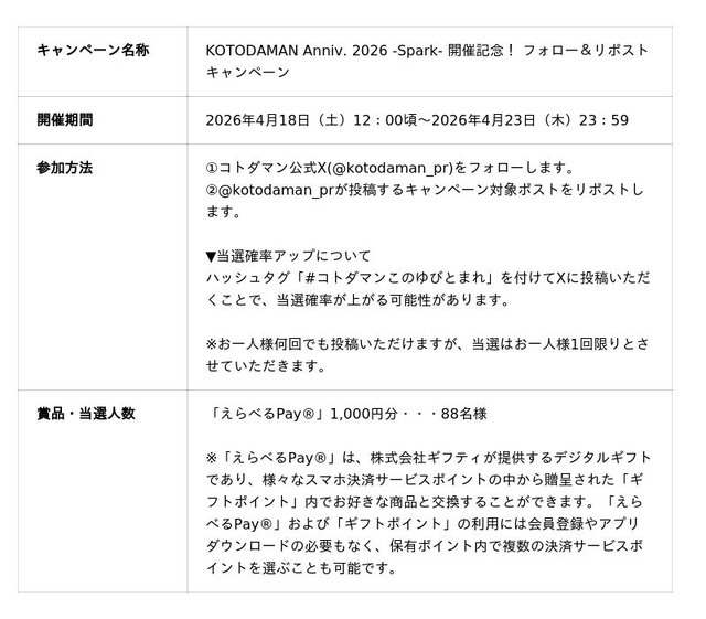 <8周年記念イベント「KOTODAMAN Anniv. 2026 -Spark-」開催期間>