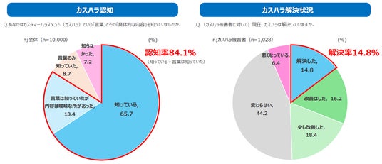 - 「カスハラ」認知率は84.1%に達するも、解決率はわずか14.8%
