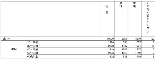 性年代別で見ると性別では大きな差はないが