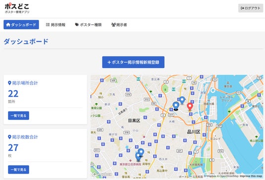 「ポスどこ」は、政治家事務所でよく聞かれる「ポスター貼ったのどこだっけ?」という会話から着想を得て名付けられました。掲示場所や掲示状況をすぐに確認できるようにしたいという思いから、掲示場所を地図上で管理できるアプリとして開発されています。