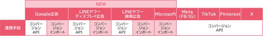 今回、「ADK-TSUNAGI」に“CAPiCO”を追加連携することで、コンバージョン計測を行う媒体の選定や、複数媒体に広告配信をする際の設定にさらなる選択肢が増え、クライアント企業の課題に応じて、より柔軟にソリューションを提供することが可能になりました。 従来の「ADK-TSUNAGI」では、データの連携手段がコンバージョンAPIのみでしたが、Yahoo!検索やMicrosoftにて、コンバージョンインポートという技術でコンバージョンデータを媒体に送信できるようアップデートしました。