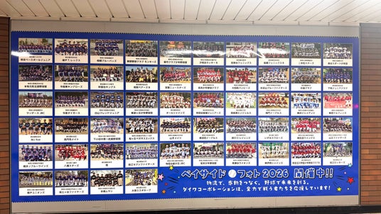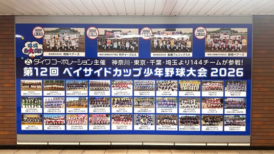 今回の広告ビジュアルはデザインを刷新し、本大会およびベイサイドカップジュニアに出場する全チームの集合写真を掲載しています。出場する子どもたち一人ひとりの姿を発信することで、一体感をより多くの方に感じていただける内容としています。掲出場所である関内駅は人通りが多く、横浜スタジアムの最寄り駅の一つであることから、スタジアム来場者など幅広い層への認知度拡大が期待されます。さらに、2026年3月に新施設「BASEGATE横浜関内」が開業したことにより、今後さらなる来街者の増加も予想されます。