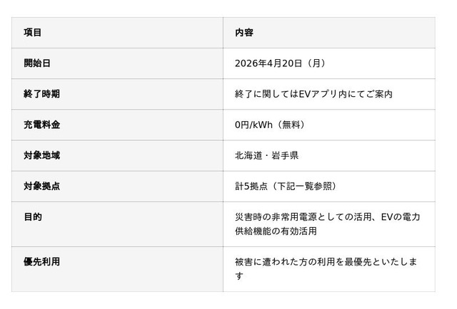 テンフィールズファクトリー株式会社(本社:京都府相楽郡精華町、代表取締役:市川 裕、以下「当社」)は、2026年4月20日に発生した三陸沖を震源とする最大震度5強の地震(マグニチュード7.7)を受け、被災地域の電力インフラ支援を目的として、北海道および岩手県に設置しているEV急速充電器『FLASH』5拠点を同日より無料開放いたしました。