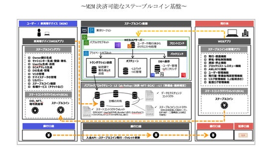 フェーズ1ではM2MJPYの技術基盤の確立を達成しましたが、フェーズ2では、Web3型M2M基盤で収集した車両などのデバイスデータのM2MJPY自動決済を実現し、さらなるステーブルコイン基盤の高度化を進めてまいります。