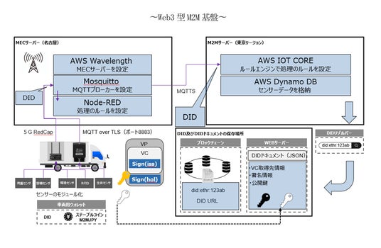 ・DIDに紐づいたデバイスデータへのVC(検証可能なデジタル証明書)及びNFT発行、M2MJPY決済との統合