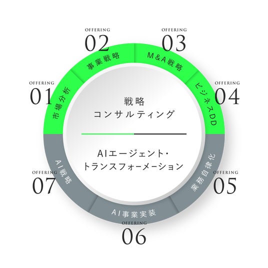 1.戦略コンサルティング 2.AIエージェント・トランスフォーメーションの二つの価値を提供しています。