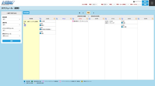 ▲「高校訪問管理」の広報スケジュール画面。高校訪問とイベントスケジュールを一覧表示し、計画が立てられる。