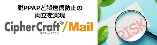 「CipherCraft(R)/Mail」は、2003年に販売を開始し、メール送信前の再確認やAI(機械学習)によるリスク検知などにより、情報漏えいを防ぐメール誤送信防止ソフトウェアです。(https://www.ciphercraft.jp/mail/)□ 用語解説・注釈