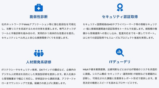 経営リスクの最小化も、IT戦略の最大化も。まるっとスマートにおまかせください。セキュリティ強化、ガバナンス整備、人材育成など企業の信頼性と持続的成長をサポートします。
